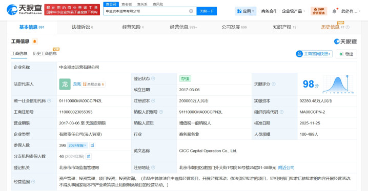 每经AI快讯,天眼查工商信息显示,近日,中金资本运营有限公司发生工商变更配资论坛,单俊葆卸任董事长,由杜鹏飞接任。该公司成立于2017年3月,法定代表人为龙亮,注册资本20亿元人民币,经营范围为资产管理、投资管理、项目投资、投资咨询,由中金公司(601995)全资持股。